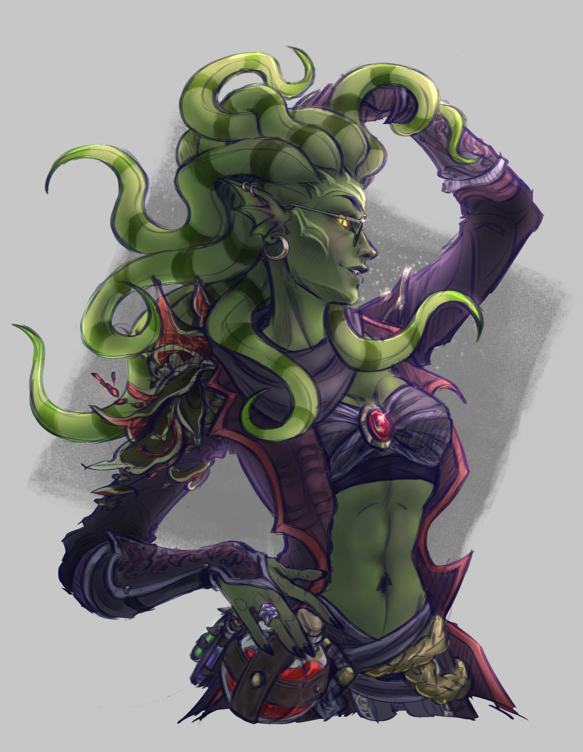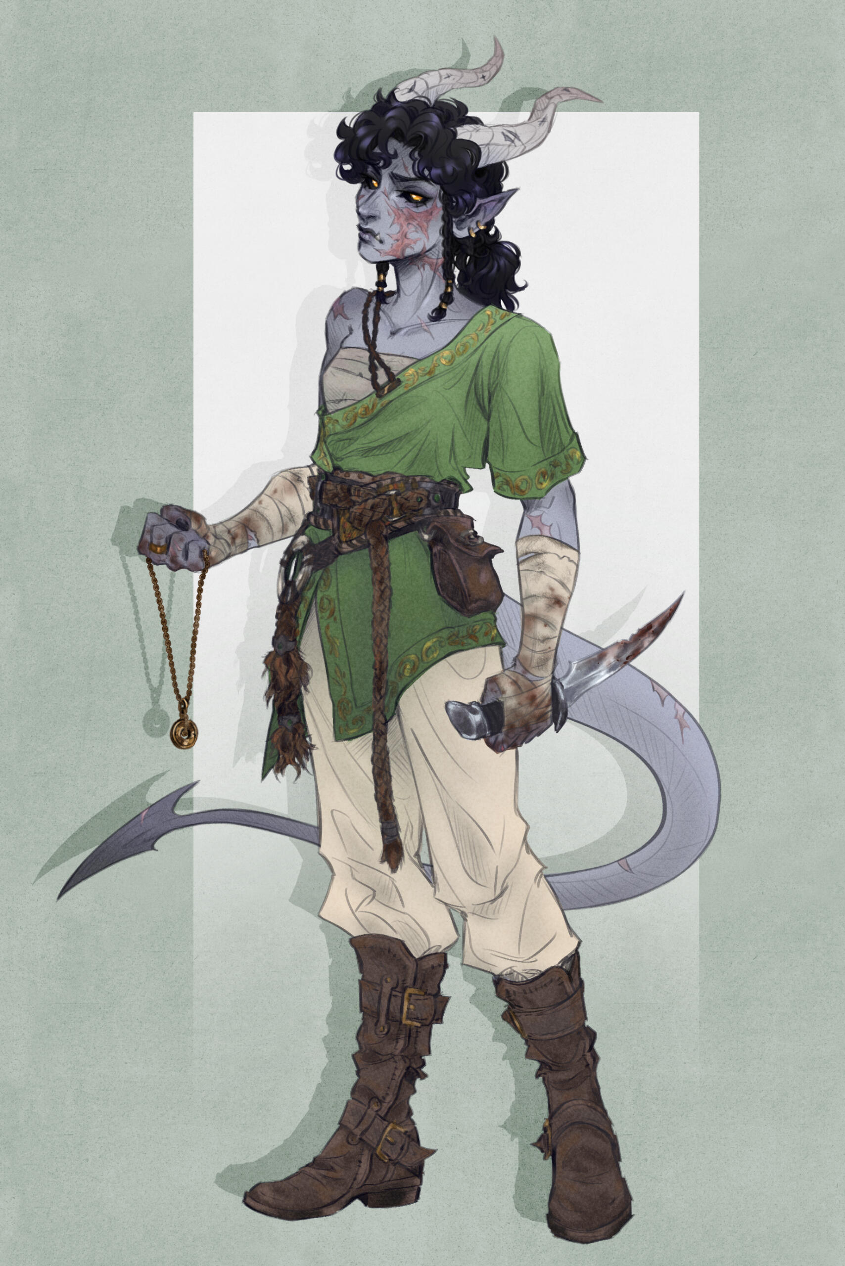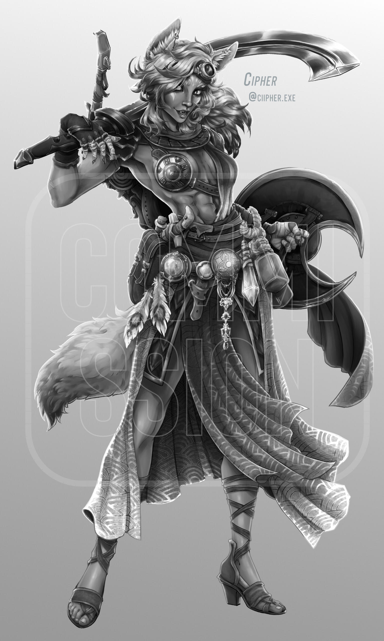 If your character does not yet have a design reference sheet, a previous artwork that shows the character's design, a Heroforge Mini, etc. (you get the idea), I am more than happy to work with the visual reference images and descriptions of your character provided by you - I will take extra time and care to figure out a fitting design for your character and thus will charge an additional fee.